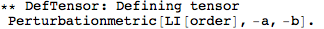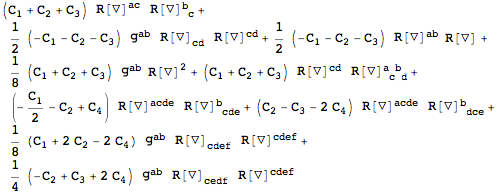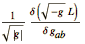 | VarL[g[-a,-b]][L] | returns while integrating by parts with respect to the covariant derivative of the metric gab. |