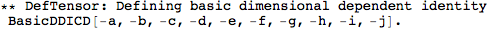 | ConstructDDIs[expr] | constructs all scalar dimensional dependent identities that can be build out of expr. |